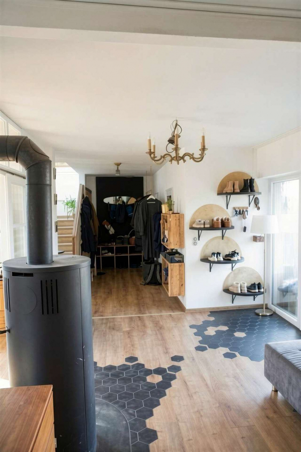 Draußen wartet ein großzügiger Garten mit Brunnen, Kiwi-Baum und einer angrenzenden Grünfläche – kein Durchgangsverkehr, viel Privatsphäre. Doppelgarage und zwei weitere Stellplätze runden das Angebot ab.